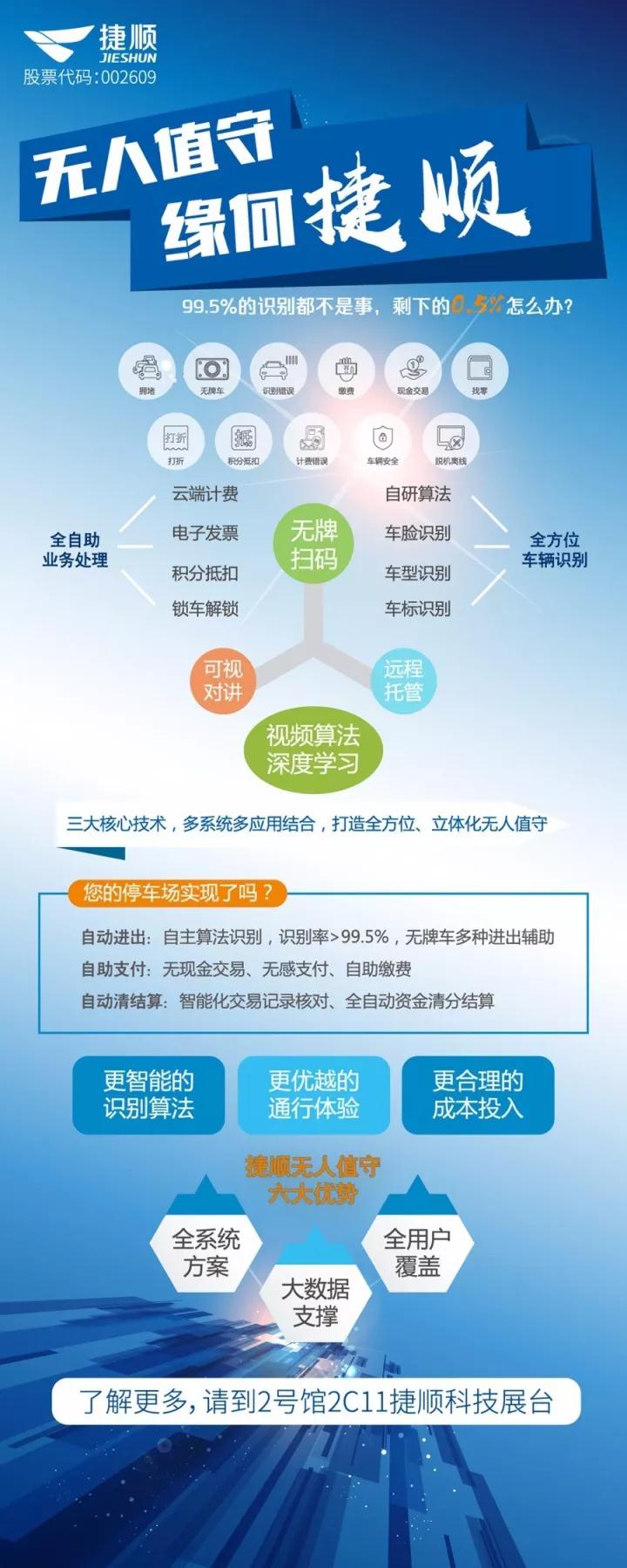 捷顺科技近年一直在致力于通过持续的研发投入,自研识别算法,围绕车辆进出、停车缴费、车辆安全、突发应急等方面,解决无人状态下的各种异常情况。捷顺科技通过三大核心技术,多系统多应用结合,打造全方位、立体化无人值守系统解决方案。