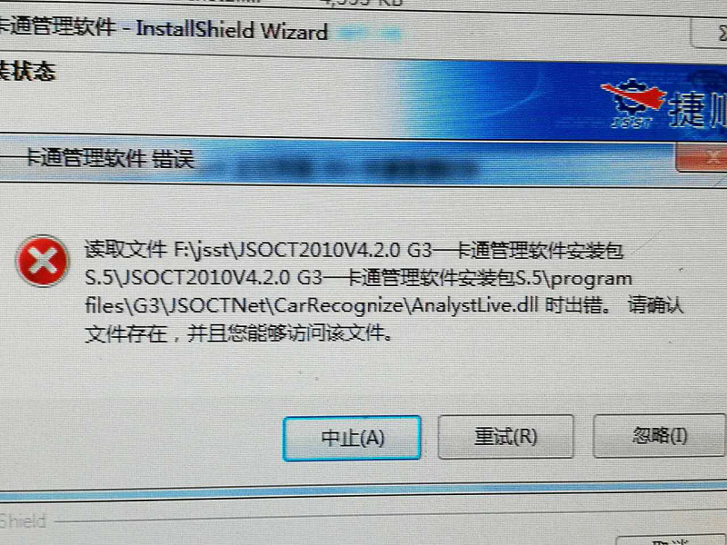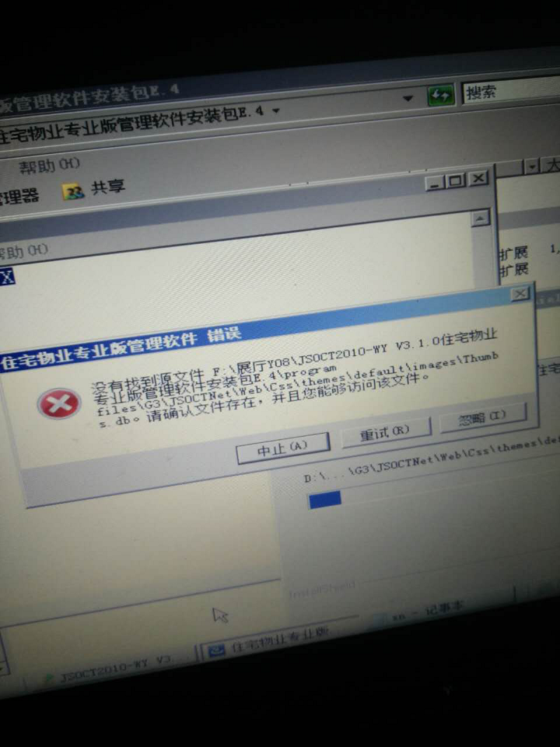 3. 现象:现场安装物业版软件时,提示缺少文件: