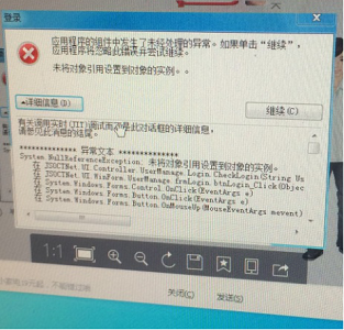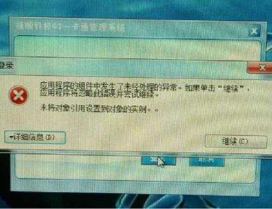 7. 启动车行终端后,进入登陆框登陆后,弹出报错框,软件无法正常登入,一般是XP系统会报这个错误,弹错提示: