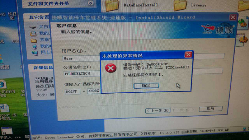 4. 现场安装速通版软件时,在输入产品序列号之后弹错,提示“错误代码:0X80040702