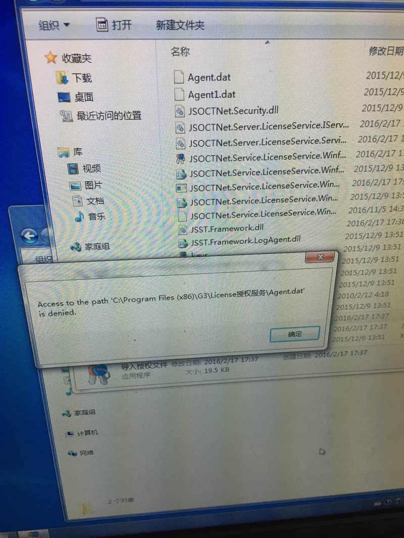 1. win7专业版系统和旗舰版系统出现在打开捷顺软件时报错,这是在导入授权文件时报错。