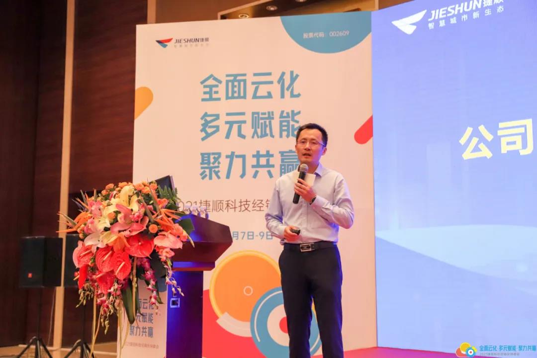捷顺科技副总经理何军致欢迎辞,他表示,面对2020年突如其来的“新冠”疫情,捷顺科技顶住国内外双重压力,在全体经销伙伴支持下,创造了全年业绩的高速增长,城市停车、云托管等多项业务实现历史性突破,综合实力全面领先行业。