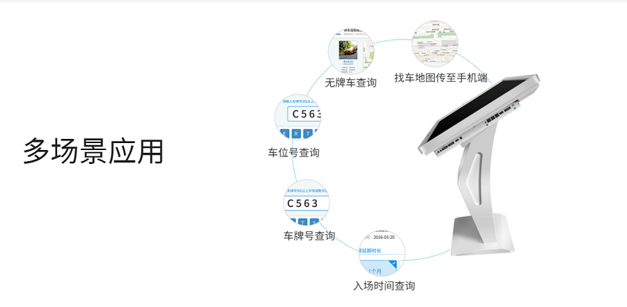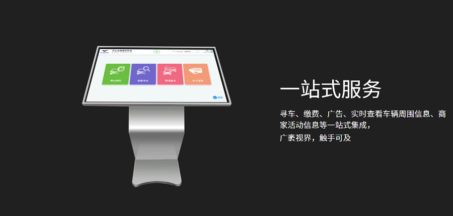 台式停车缴费机主要用于车主离场时进行车辆位置查找,车主可以通过输入,除简称和区域外完整车牌号码(如8AA88)找到车辆位置,以及到达该位置的最优路径。