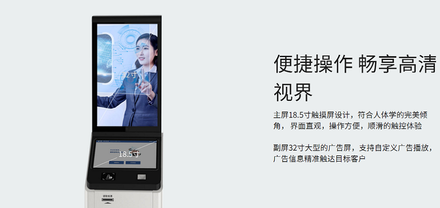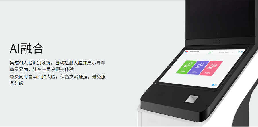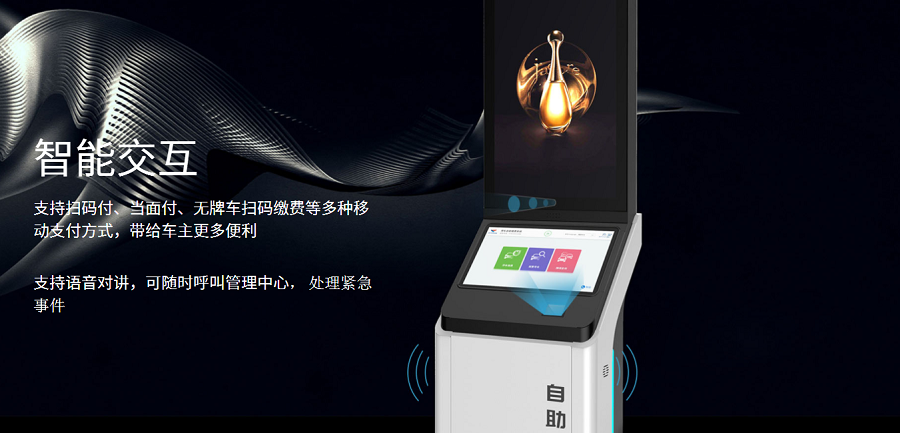 大屏用于显示广告,斜面小屏用于自主缴费或找车,同时能支持二维码扫描(包括扫码优惠,纸票车场计费)便捷快速的广告投放和更换操作,主要用于场所形象要求较高,追求广告效果及用户体验,无现金支付要求的项目。