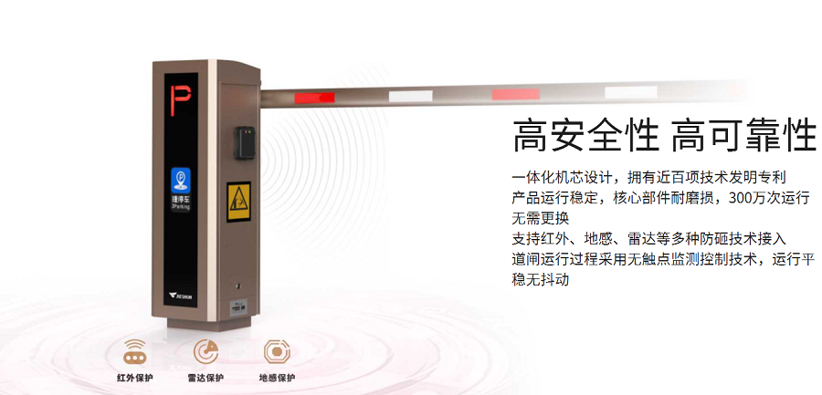 C系商业道闸集机电一体化、上电自适应控制,500万次无故障稳定开关闸运行,支持雷达、地感、红外检测及关闸遇阻立开等防砸检测方式,支持手动遥控开闸,通过标准夹头适配各种杆型,适用各种商业广场、体育场馆等大型公共场所。
