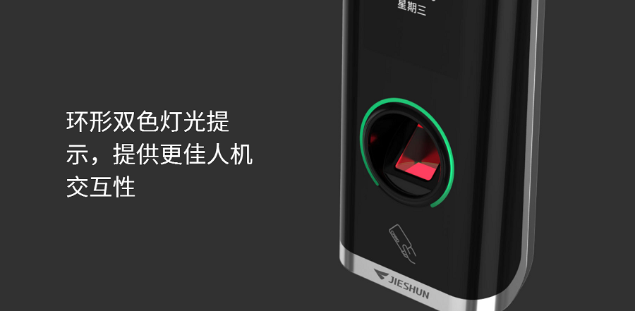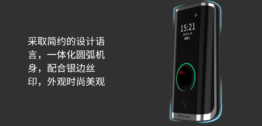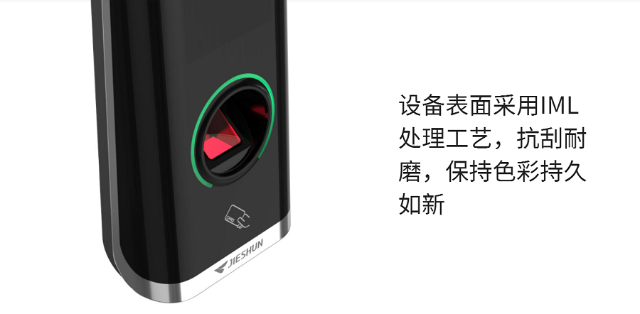 荣御指纹读卡器JSMJD19是一款针对大型园区、写字楼、政府等场景推出的⼤容量指纹读卡器,最⾼可容纳 20000枚指纹,该产品表⾯采⽤IML处理⼯艺,⾼端⼤⽓,尽显科技感,采用TCP/IP通讯协议,指纹下载速度快。