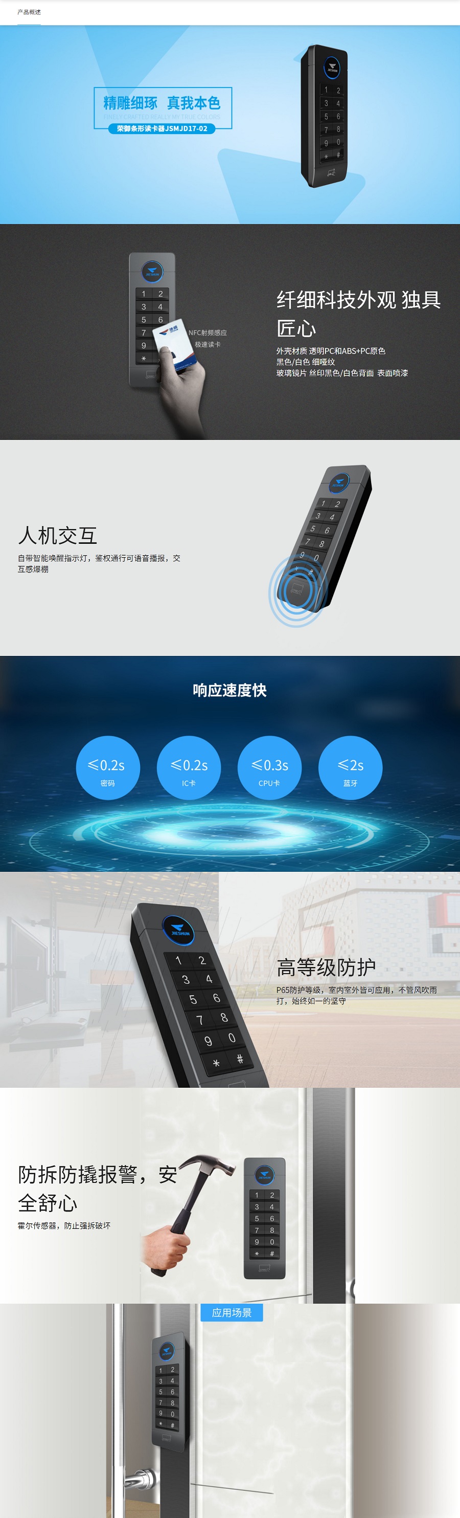 荣御条形读卡器是一款针对窄金属边框安装位推出的门禁产品,外观纤细厚实,满足社区、楼宇各类场所的安装需求,其外观将工业产品和艺术完美的融合,高端大气的同时保持科技感,在实现安全管控的同时带来了很强的观赏性。具有场景适应性强、简易安装、快速部署的特点。